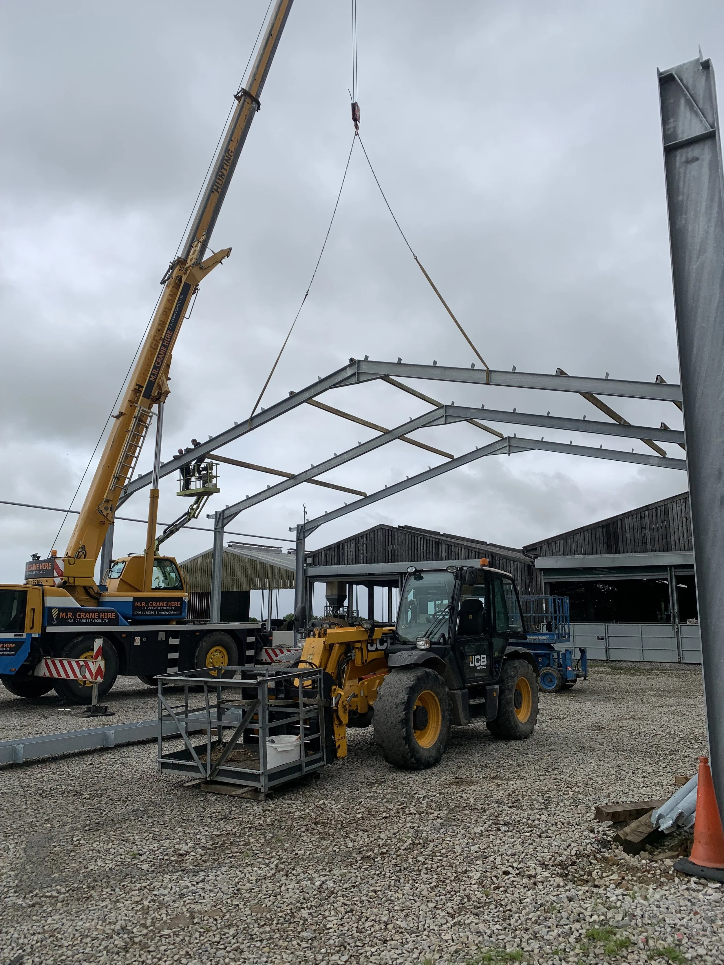 Due to the size and weight of the steel sections, we hired in a large crane to safely lift and position the beams during erection. Once in place, the structure came together smoothly, creating a robust shed built to last.