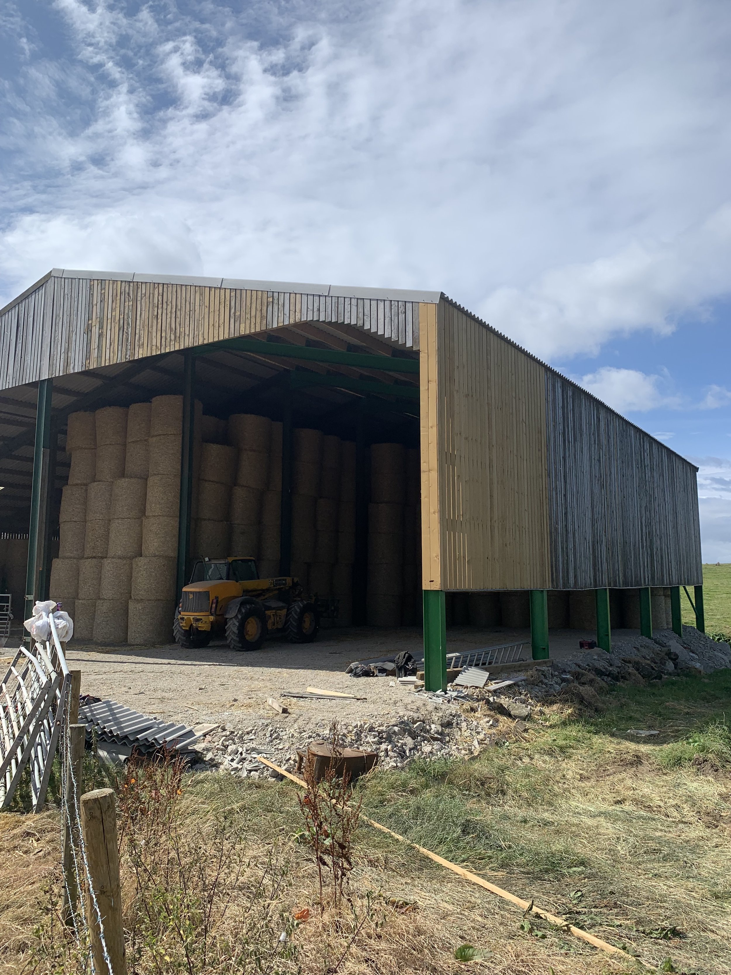 We recently completed a 23-metre run of Yorkshire cladding along the left side of the building, followed by an 8-metre section across the back. Because the rear faced a high bank, normal access wasn’t possible, so we hired a long-reach boom JCB to complete the job safely and to our usual high standard.